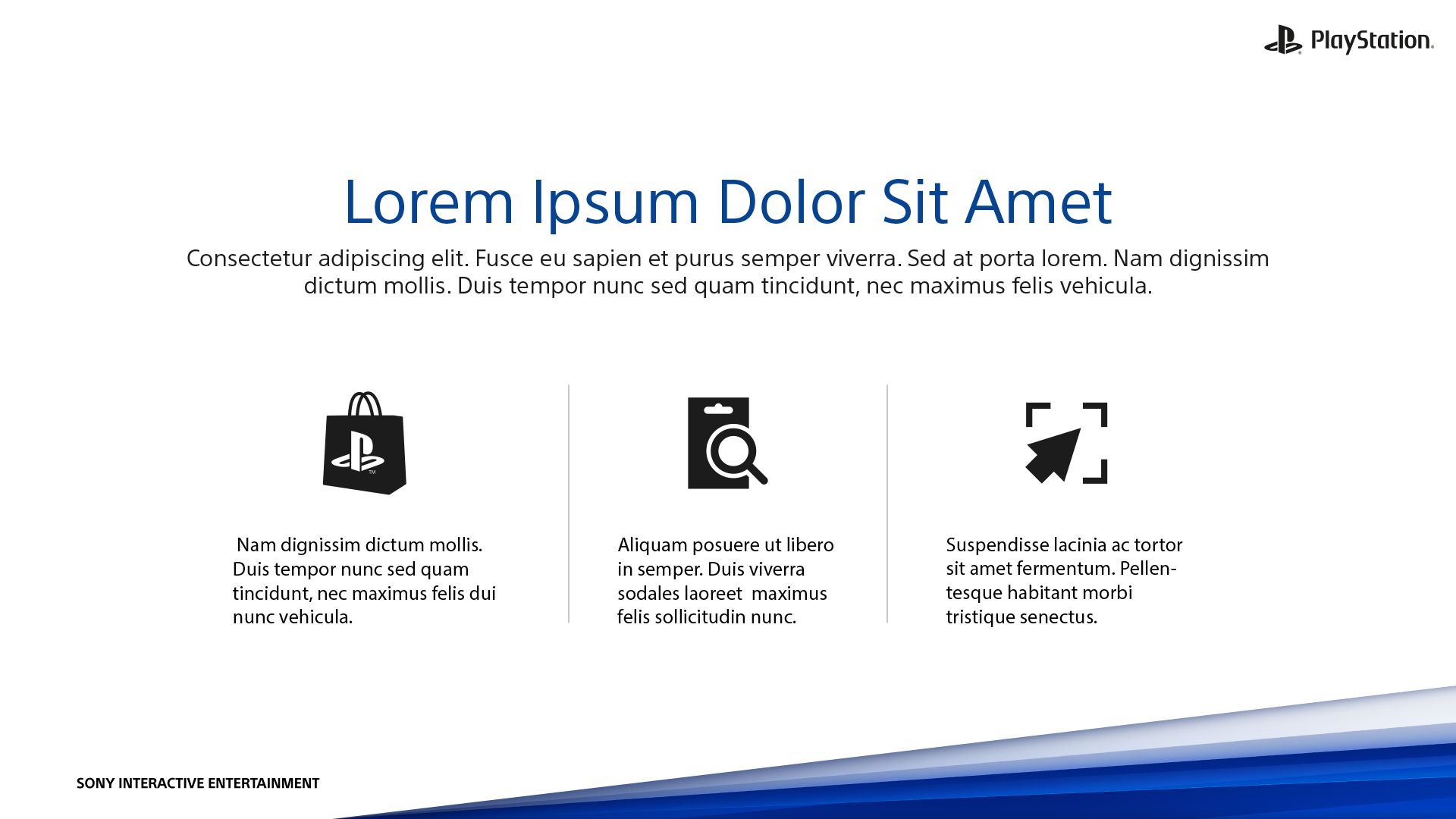 Momentum is a graphic language used in marketing communication to capture the idea that Play Has No Limits. Momentum is uplifting, represented by an upward trajectory of forms. Conceptually, it represents the feeling of stepping through the portal into the PlayStation® Universe — the sensation of transportation to a multidimensional universe where anything is possible.